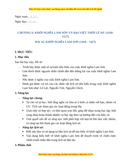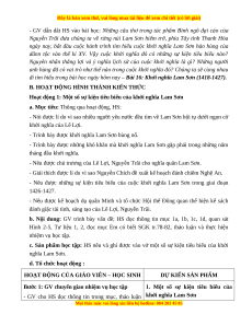 BÀI 16: KHỞI NGHĨA LAM SƠN (1418 – 1427) I. MỤC TIÊU 1. Mục tiêu Sau bài học này, HS sẽ: