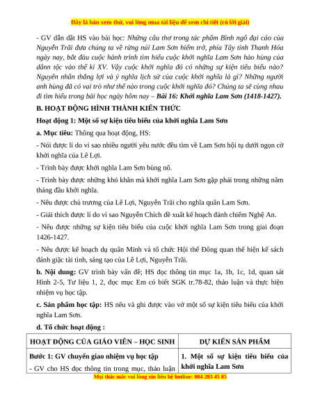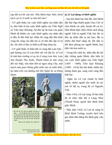 - GV giới thiệu về thân thế và vùng đất Lam Sơn -