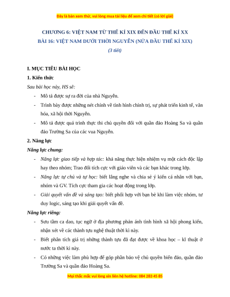 BÀI 16: VIỆT NAM DƯỚI THỜI NGUYỄN (NỬA ĐẦU THẾ KỈ XIX) (3 tiết)