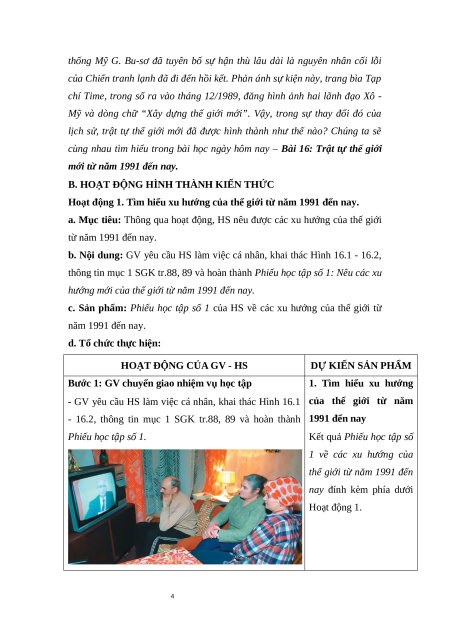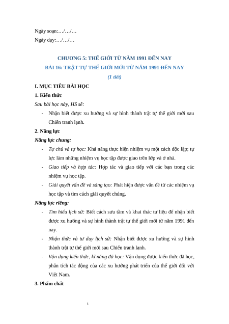 Giáo án Bài 16 Lịch sử 9 Cánh diều: Trật tự thế giới mới từ năm 1991 đến nay