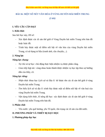 BÀI 16: MỘT SỐ NÉT VĂN HÓA Ở VÙNG DUYÊN HẢI MIỀN TRUNG (2 tiết)