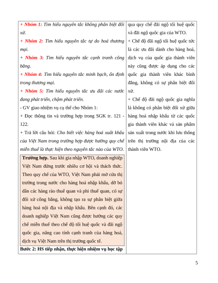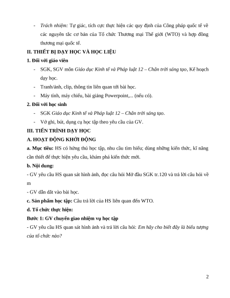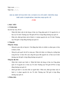 Giáo án Bài 16: Một số nguyên tắc cơ bản của Tổ chức Thương mại Thế giới KTPL 12 Chân trời sáng tạo