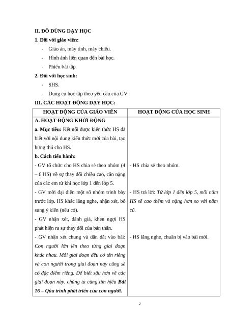 BÀI 16: QUÁ TRÌNH PHÁT TRIỂN CỦA CON NGƯỜI (4 tiết)