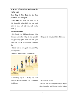 - Phân biệt được một số giai đoạn phát triển chính của con người ( tuổi