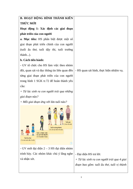 - Phân biệt được một số giai đoạn phát triển chính của con người (tuổi