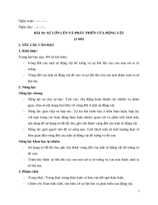 BÀI 16: SỰ LỚN LÊN VÀ PHÁT TRIỂN CỦA ĐỘNG VẬT (2 tiết)