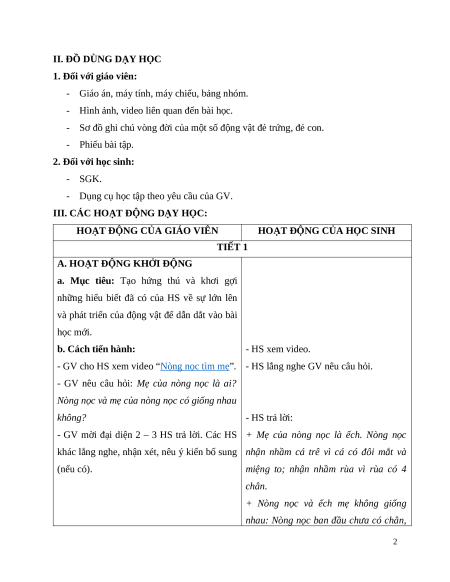 - Trình bày được sự lớn lên của con non nở ra từ trứng và con non được sinh ra từ thú mẹ. 3. Phẩm chất: