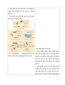 - GV mời đại diện 2 – 3 nhóm trình bày. Các thụ tinh nở thành con non và phát triển
