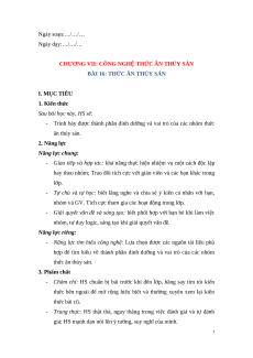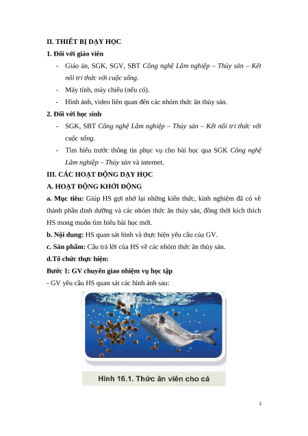 Giáo án Bài 16: Thức ăn thuỷ sản Công nghệ Lâm nghiệp Thủy sản 12 Kết nối tri thức