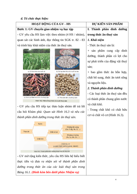 - GV yêu cầu HS làm việc theo nhóm (4 HS / nhóm), trong thức ăn thuỷ sản
