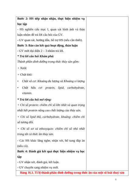 hợp để tìm hiểu về thành phần dinh dưỡng và vai trò của các nhóm thức ăn thủy sản. 3. Phẩm chất