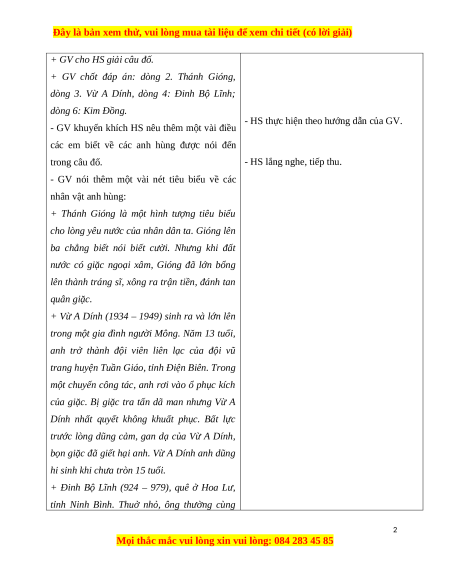 + GV chốt đáp án: dòng 2. Thánh Gióng,
