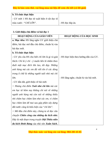 3. Giới thiệu chủ điểm và bài đọc 1
