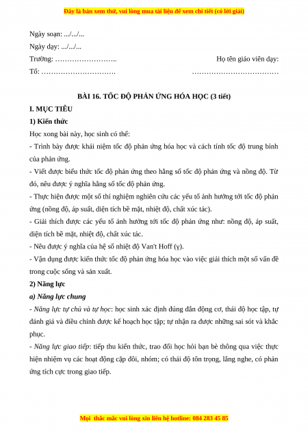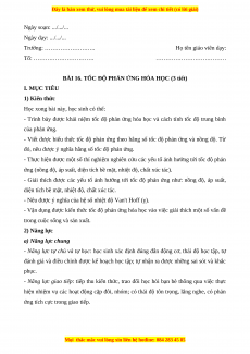 BÀI 16. TỐC ĐỘ PHẢN ỨNG HÓA HỌC (3 tiết) I. MỤC TIÊU 1) Kiến thức