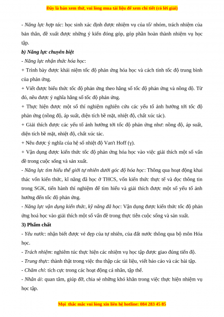 ứng hoá học vào giải thích một số vấn đề trong thực tiễn cuộc sống và sản xuất. 3) Phẩm chất