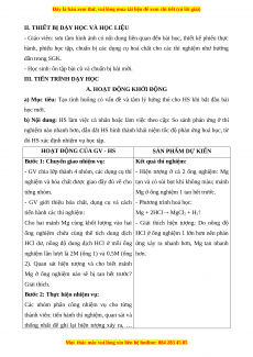 hành, phiếu học tập, chuẩn bị các dụng cụ hoá chất cho các thí nghiệm như hướng dẫn trong SGK.