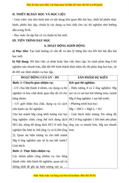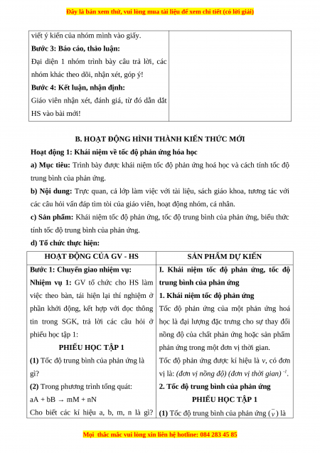 việc theo bàn, tái hiện lại thí nghiệm ở 1. Khái niệm tốc độ phản ứng