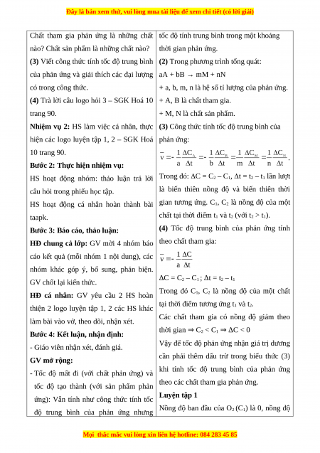 a) Mục tiêu: Trình bày được khái niệm tốc độ phản ứng hoá học và cách tính tốc độ