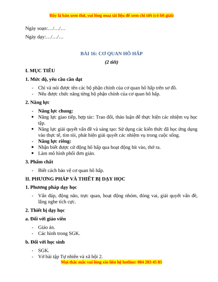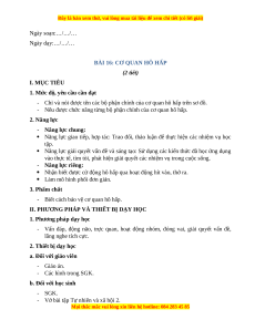 BÀI 16: CƠ QUAN HÔ HẤP (2 tiết) I. MỤC TIÊU
