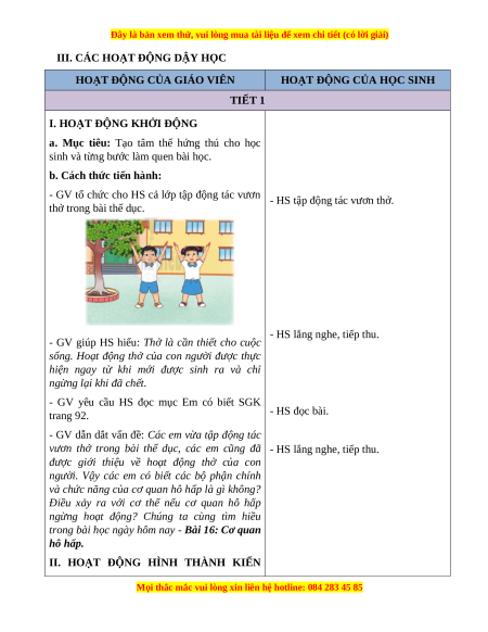 III. CÁC HOẠT ĐỘNG DẬY HỌC