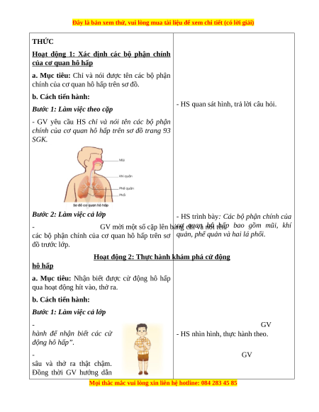 phận của cơ quan hô hấp. b. Cách tiến hành: