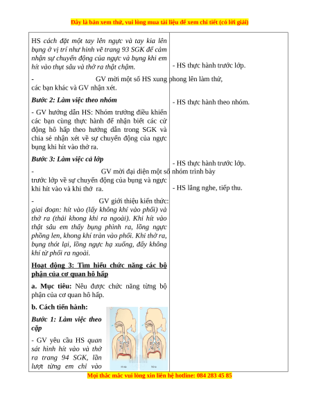 sát hình hít vào và thở ra trang 94 SGK, lần