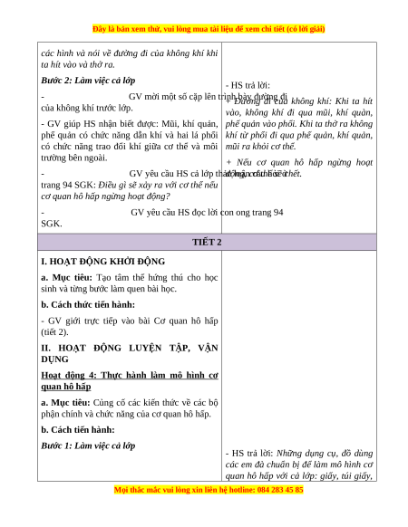 - GV giúp HS hiểu: Thở là cần thiết cho cuộc