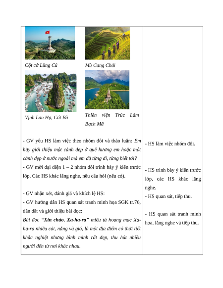 - GV cho HS xem những bức tranh về cảnh đẹp của quê - HS xem tranh hương, đất nước: Cột cờ Lũng Cú Mù Cang Chải