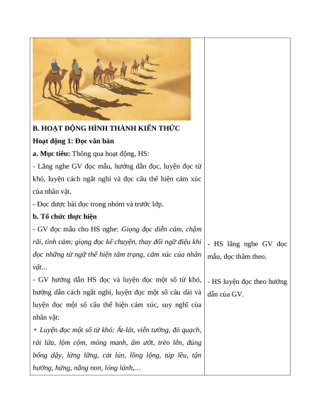 Bài đọc “Xin chào, Xa-ha-ra” miêu tả hoang mạc Xa- họa, lắng nghe và tiếp thu.