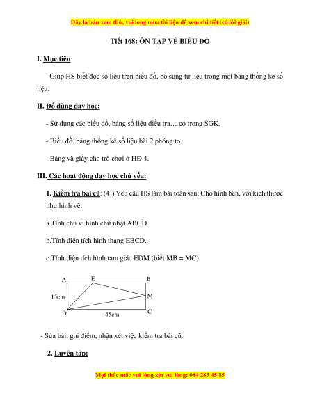 Tiết 168: ÔN TẬP VỀ BIỂU ĐỒ I. Mục tiêu: