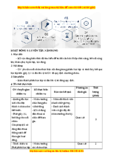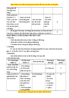 4. Tổ chức thực hiện GV chuyển giao HS thực hiện Phương án Thời lượng Báo cáo kết quả nhiệm vụ nhiệm vụ đánh giá (phút) - Hướng dẫn học - HS tiến hành - Nhóm đủ thành - Quan sát 2 sinh chia lớp chia nhóm, bầu viên nhanh nhất thành 4 nhóm (8- nhóm trưởng và giơ tay. 10 HS/nhóm) thư ký. - Danh sách thành viên có ghi đầy - Phát bảng phụ, - Nhóm trưởng đủ nhóm trưởng, bút lông cho mỗi