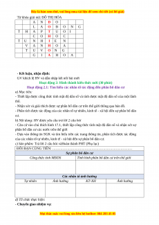 c) Sản phẩm: Trả lời 2 câu hỏi vàHoàn thành PHT (Phụ lục)