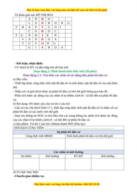 Hoạt động 2.1: Tìm hiểu các nhân tố tác động đến phân bố dân cư a) Mục tiêu: