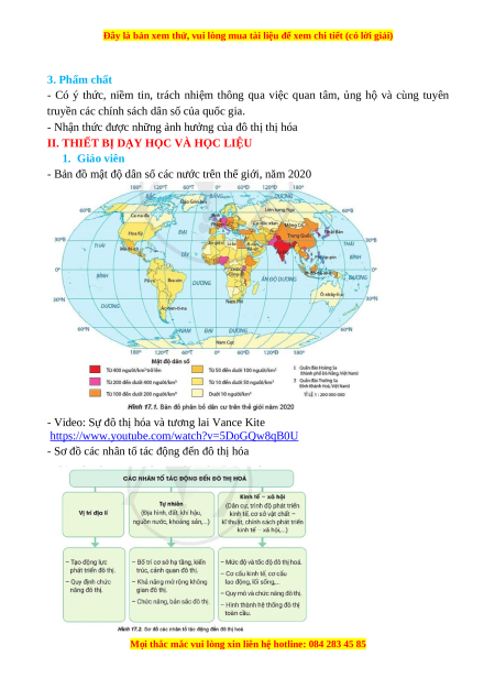Giáo án Bài 17 Địa lí 10 Cánh diều: Phân bố dân cư và đô thị hóa