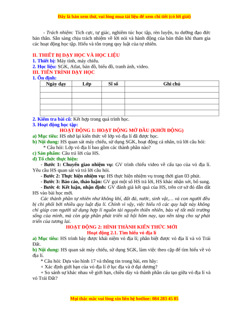 - Bước 1: Chuyển giao nhiệm vụ: GV trình chiếu video về cấu tạo của vỏ địa lí.