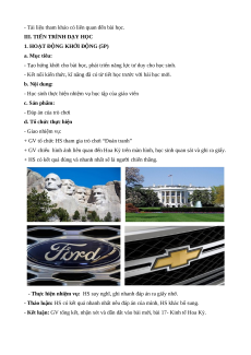+ GV chiếu hình ảnh liên quan đến Hoa Kỳ trên màn hình, học sinh quan sát và ghi ra giấy.