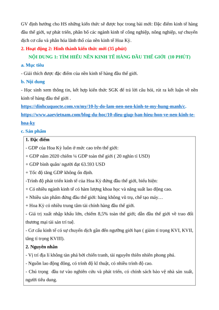 - Giải thích được đặc điểm của nền kinh tế hàng đầu thế giới. b. Nội dung