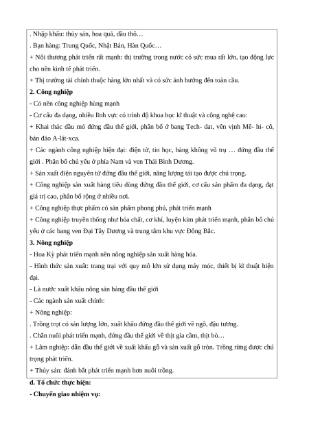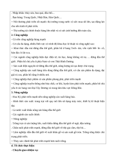 + Trình bày được sự phát triển, phân bố của các ngành kinh tế (công ngiệp, nông nghiệp,