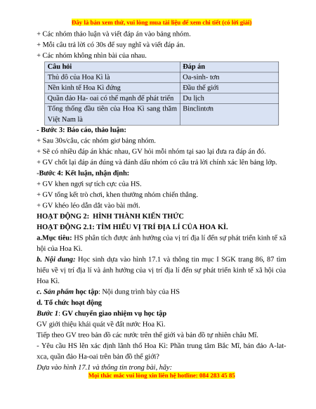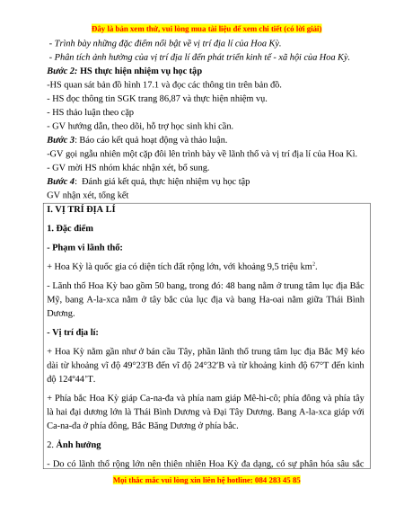 GV giới thiệu khái quát về đất nước Hoa Kì.