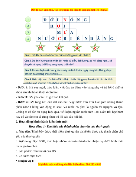 Giáo án Bài 17 Địa lí 6 Cánh diều (2024): Các thành phần chủ yếu của thủy quyển. Tuần hoàn nước trên Trái Đất