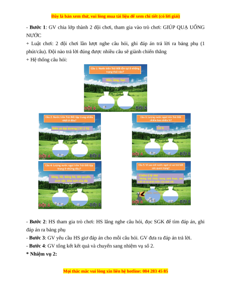 - Bước 1: GV chia lớp thành 2 đội chơi, tham gia vào trò chơi: GIÚP QUẠ UỐNG NƯỚC