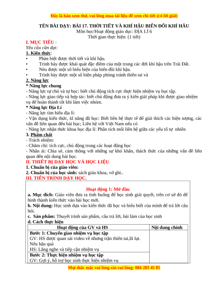 TÊN BÀI DẠY: BÀI 17. THỜI TIẾT VÀ KHÍ HẬU BIẾN ĐỔI KHÍ HÂU