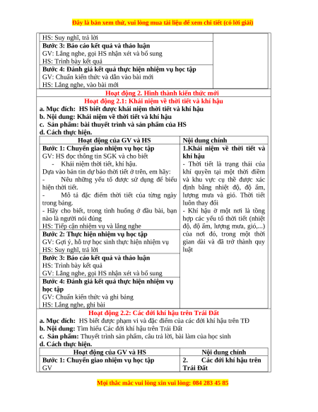 Hoạt động 2.1: Khái niệm về thời tiết và khí hậu