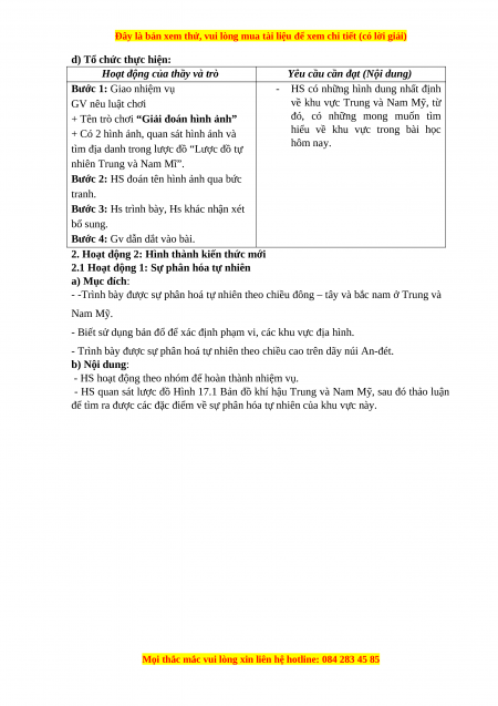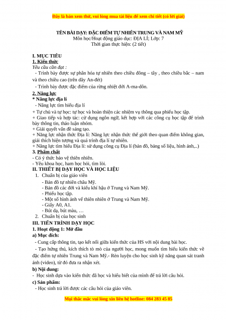 Giáo án Bài 17 Địa lí 7 Cánh diều (2024): Đặc điểm tự nhiên Trung và Nam Mĩ