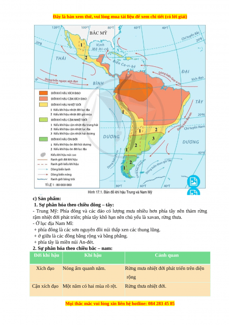 - -Trình bày được sự phân hoá tự nhiên theo chiều đông – tây và bắc nam ở Trung và Nam Mỹ.