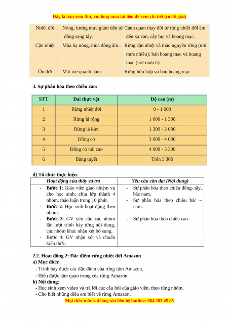 2.2. Hoạt động 2: Đặc điểm rừng nhiệt đới Amazon a) Mục đích: