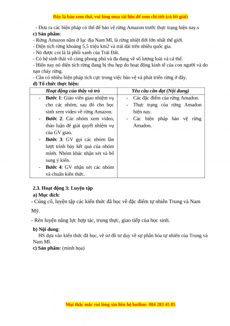 - Hiểu được tầm quan trong của rừng Amazon. b) Nội dung: