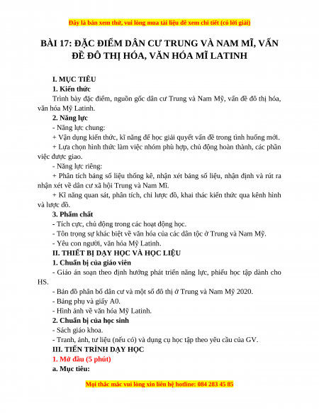 BÀI 17: ĐẶC ĐIỂM DÂN CƯ TRUNG VÀ NAM MĨ, VẤN