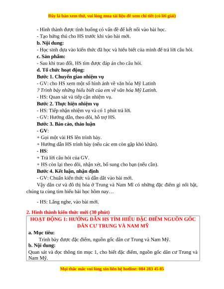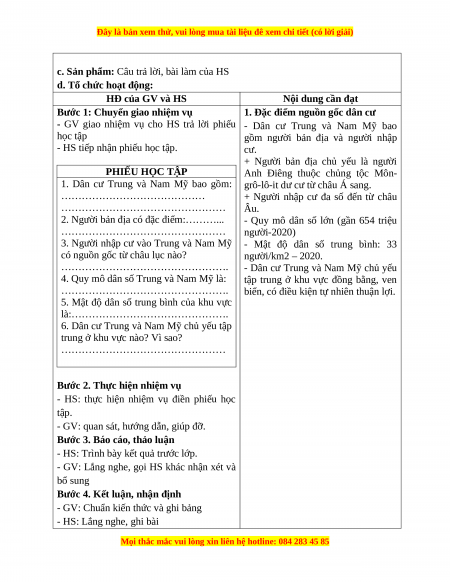 Trình bày được đặc điểm, nguồn gốc dân cư Trung và Nam Mỹ. b. Nội dung: