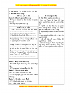 - GV giao nhiệm vụ cho HS trả lời phiếu - Dân cư Trung và Nam Mỹ bao học tập